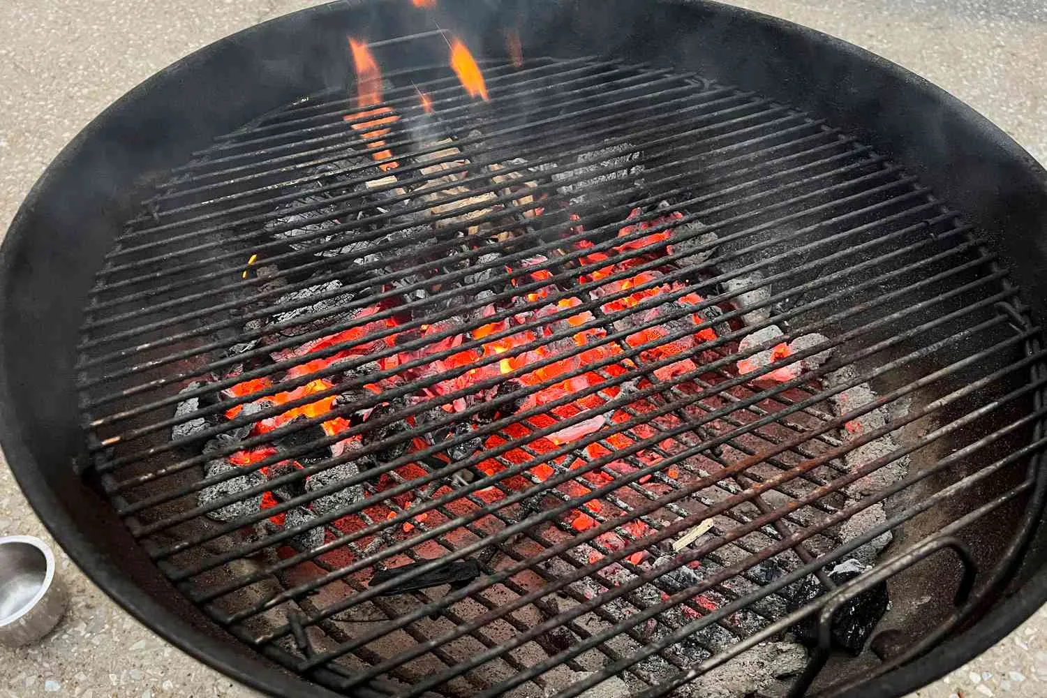 Before you start grilling, wait for the charcoal to turn red hot. The charcoal should burn until it is glowing red and has a thin layer of ash covering the surface. This ensures that the charcoal is generating maximum heat and helps ensure that your food is cooked evenly and has the best flavor.